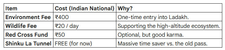 The Ladakh Entrance Fee (EDF): Once you cross the pass and hit the Kargyak or Padum checkpoints, you officially enter the UT of Ladakh.